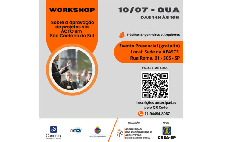 A AEASCS (Associação dos Engenheiros e Arquitetos de São Caetano do Sul) realizará um workshop gratuito sobre a análise e aprovação digital de projetos via ACTO.