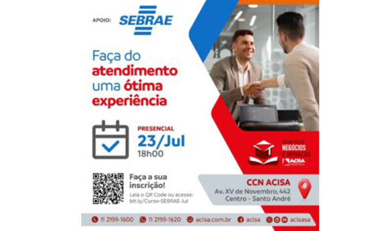 Para abordar esse novo cenário, a ACISA – Associação Comercial e Industrial de Santo André – em parceria com o Sebrae promoverão uma palestra presencial na terça-feira (23 de julho) às 18h, no Centro de Capacitação & Negócios ACISA, localizado na Avenida XV de Novembro, 442 – Centro – Santo André, com estacionamento próprio. Os interessados devem fazer previamente a sua inscrição por meio do link: bit.ly/Curso-SEBRAE-Jul.