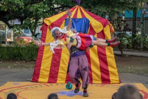 Sinopse: Os experientes artistas Palhita e Sizu, já de cabelos brancos, revivem memórias de quando a Família Tortonni montou seu circo cheio de atrações fantásticas. Após um triste acontecimento, todo mundo foi embora e essa dupla precisou se desdobrar para que a magia do picadeiro não se apagasse. Números de acrobacia, equilíbrio, contorcionismo, adestramento de animais, disparo de canhão, são realizados por esse par cheio de graça. Hoje tem espetáculo? Tem sim, senhoras e senhores! Duração: 55 minutos. Classificação Livre – Grátis