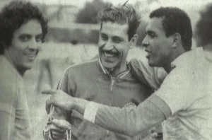 Luís Pereira, Jairzinho, cabelo black power, e Leivinha de bigode, na concentração da Seleção Brasileira na Copa de 1974