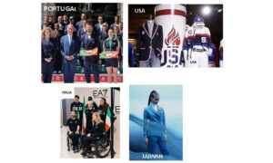 Portugal – A Decenio criou peça clássica na cerimônia de abertura com peças de alfaiataria em azul marinho. Ele leva um lenço com mensagens de amor e paz no mundo