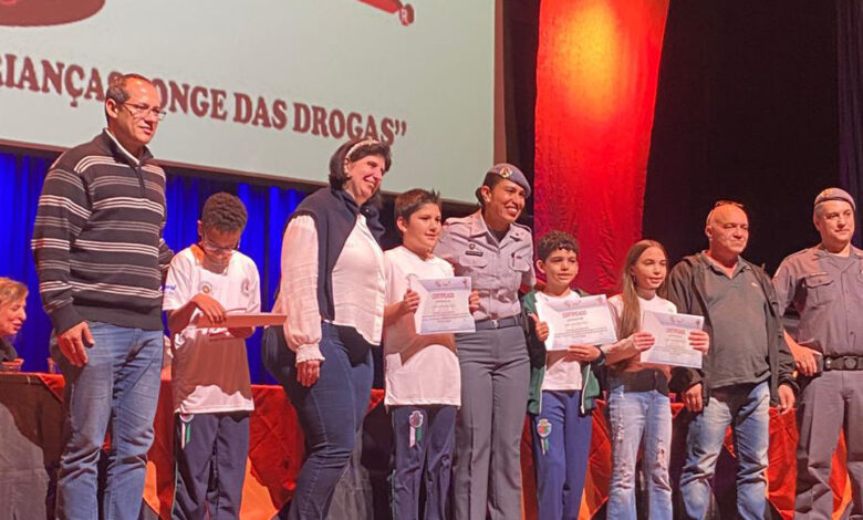 No total, participaram da formatura 819 alunos dos 5º anos das escolas municipais. O programa, com palestras e atividades direcionadas à prevenção às drogas e às práticas violentas dentro e fora do ambiente escolar, foi conduzido de forma voluntária pela PM Juliana Ferreira Pinto e pelo cabo PM Noel Antônio de Aguiar Filho.