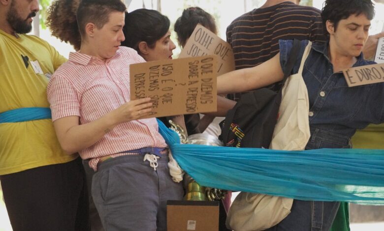 Até o dia 10 de agosto de 2024, a Cia de Teatro Acidental ( @ciadeteatroacidental ) realiza uma temporada de apresentações gratuitas da performance “Coro dos Esperançosos” em diversas praças públicas de São Paulo