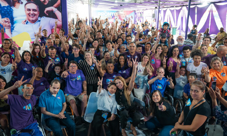 Marcelo Lima (Podemos), candidato a prefeito de São Bernardo do Campo, reafirmou seu compromisso com a inclusão social no Dia Nacional de Luta da Pessoa com Deficiência, neste sábado (21), durante um encontro no seu comitê central, localizado no Centro da cidade. À tarde, ele levou sua “Onda Roxa” ao Jardim Nazareth, onde mais de 2 mil pessoas se reuniram, vestidas de roxo e entusiasmadas, cantando os jingles da campanha com grande energia.