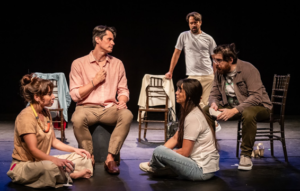 “Os diálogos seguem uma linha realista e crua e a teatralidade vai se estabelecendo na medida em que o diretor personagem passa a dirigir em tempo real a peça que o público está assistindo”, fala Vinícius Piedade sobre o reencontro que se transforma em um campo fértil para o confronto de ideias e emoções.