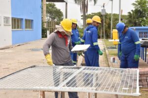 Estão sendo realizadas reforma total do prédio, adequação total de hidráulica e elétrica, pisos, pintura geral, forro, execução da estrutura da cobertura, esquadrias metálicas e de madeira. Além disso, a revitalização do paisagismo será realizada com mudas fornecidas pelo viveiro municipal.