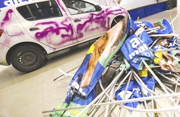 A situação começou a se tornar mais grave no dia 16 de outubro, quando uma apoiadora de Manente teve o carro vandalizado e pichado de roxo. Além disso, um adesivo de Marcelo Lima foi colado no veículo. Um dia depois, três criminosos foram presos pela Polícia Civil com bandeiras de Alex. Uma bomba também foi jogada durante caminhada de Manente e proferidas ameaças contra ele.