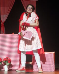 Então, desta vez, a indefesa menina que saiu de casa, a pedido de sua mãe, para levar comida para sua avózinha adoecida na floresta, mas que foi surpreendida pelo lobo mau, ganha novos contornos e, de dramática se torna hilária e divertida, com direção de Pitty Webo o clássico conto aborda alguns assuntos comuns no cotidiano atual do universo infantil, como bullying, relação com os pais, desafios do dia a dia, entre outros.