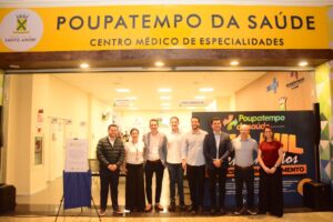 Nove meses após ser inaugurado, o Poupatempo da Saúde de Santo André alcançou a expressiva marca de 250 mil atendimentos. O número foi celebrado nesta terça-feira (12) em evento que contou com a presença do prefeito Paulo Serra, do prefeito eleito e idealizador da unidade, Gilvan Junior, do secretário de Saúde, Acacio Miranda e de outras autoridades, entre elas Vanessa Nery, gerente geral do Atrium Shopping, local onde o equipamento está instalado.