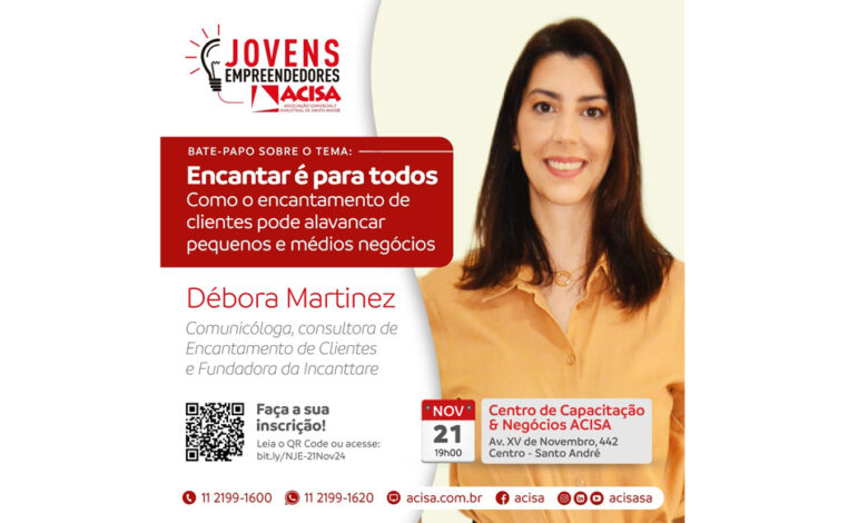 A fim de explorar e aprofundar o tema, o Núcleo de Jovens Empreendedores (NJE) da ACISA promoverá uma palestra gratuita na quinta-feira (21 de novembro), às 19h, no Centro de Capacitação & Negócios, sob o comando da consultora Débora Martinez.