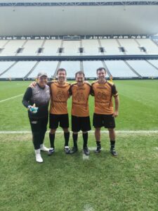 “Eles me convidaram, porque, anualmente, tem jogo de juízes e desembargadores como confraternização, e sempre jogamos no Morumbi, mas ontem ele arrumou no Itaquerão. Aí, encontramos o Augusto Melo, presidente do Corinthians, que jogou na minha equipe e um dos meus filhos, o Milton Bigucci Jr., 51 anos. O meu outro filho, o Marcelo Bigucci, 44 anos, jogou na equipe adversária”, comentou Bigucci sobre o convite e as equipes.