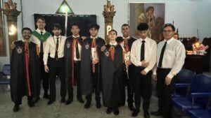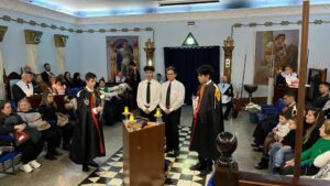 “Os Sobrinhos/Filhos do Capítulo, “Cavaleiros do Templo”, da Ordem DeMolay, subordinado ao “Supremo Conselho DeMolay Brasil”, agradecem as presenças dos Tios, Ivan Félix dos Santos, Venerável Mestre, da ARLS, “28, de Julho”, Nº 133 (GLESP); João Vanderlei Bochio e Alessandro Landre Diogo, por representarem nossa Loja Patrocinadora, em nossa Cerimônia de Posse da Nova Gestão, neste último sábado. Agradecemos também as Presenças dos Tios, das Lojas Co-Irmãs, GLESP e GOB, pelo prestígio de sempre e por incentivarem à Causa da Ordem DeMolay.” — Tio/Pai, Alexandre Garzeri — Presidente dos Conselhos Consultivos dos Capítulo, “Cavaleiros do Templo” e do Priorado, “Cavaleiros de Sangreal”, da Ordem DeMolay.