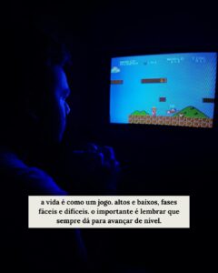 Tantos outros momentos em que você vê tanta dificuldade em seguir em frente que tem vontade de desistir de tudo. “Desinstalar”. E quantas vezes não fazem isso? Mas você não. Está aqui ainda. “Jogando”, não é mesmo? Esse jogo que só vai acabar quando você mesmo terminar. Já parou para pensar como a vida é isso? Como ela é feita de fases iguais a um jogo de celular? Mas que você sempre, de uma forma ou de outra, passa de nível e segue jogando? Que desistir é uma besteira e que não importa a dificuldade você sempre vai seguir jogando porque lá na frente vão ter níveis mais fáceis? E vai ser esse eterno sobe e desce? Então relaxa, olha o tanto que você já brincou até agora. Olha para frente e continua. O jogo da vida nunca acaba.