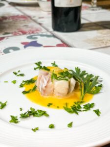 Mosaico de Peixe Crudo com Cagaita: Uma experiência sofisticada que une a frescura do peixe cru à intensidade da cagaita, fruta típica do Cerrado, criando um mosaico de sabores que instiga os sentidos.