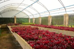 Com capacidade anual de 110 mil unidades (o equivalente a 3,5 mil metros quadrados de canteiros), atualmente conta com quatro estufas para produção de vegetação, com 10,5 mil unidades de árvores, 1,8 mil palmeiras, 18 mil arbustos e 3,5 mil herbáceas – neste montante estão a grama-amendoim e as bromélias.