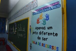 No escopo de atuação, para além da proposta pedagógica inclusiva desenvolvida em classe regular, o Atendimento Educacional Especializado é realizado no contraturno escolar nas salas de recursos multifuncionais, que são equipadas com vasto acervo de jogos e materiais diversificados.