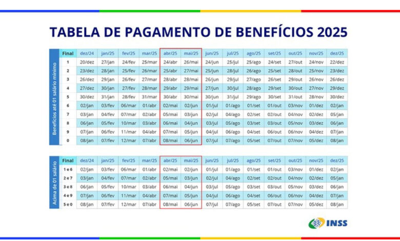 O calendário de pagamentos leva em conta o número final do cartão de benefício, sem considerar o último dígito verificador, que aparece depois do traço. O crédito da primeira parcela do abono será feito entre os dias 24 de abril a 8 de maio. Recebem primeiro os beneficiários que ganham até um salário-mínimo. Os aposentados e pensionistas que recebem acima do piso nacional terão o valor da parcela creditado de 2 a 8 de maio.