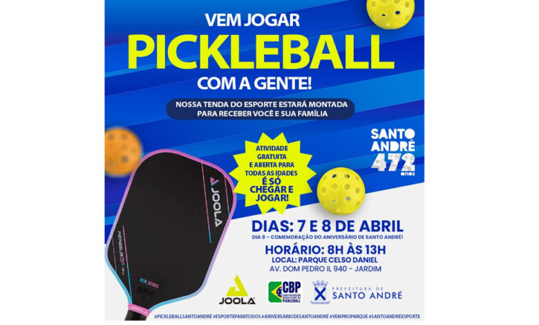 Então venham conhecer e participar desse evento organizado pelo departamento de esporte da prefeitura de Santo André com apoio da Joola , da confederação brasileira de Pickleball e do C.A. Aramaçan.