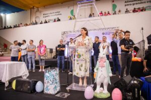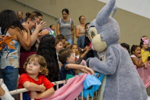 Realizado com o objetivo de proporcionar uma Páscoa mais feliz às famílias em situação de vulnerabilidade social, o evento contou com a entrega de kits especiais e uma série de atrações para todas as idades. Shows da dupla “Dois Irmãos”, personagens infantis interativos e sorteios de brindes como airfryer, micro-ondas, videogame, bicicleta, TV e geladeira marcaram a programação festiva.