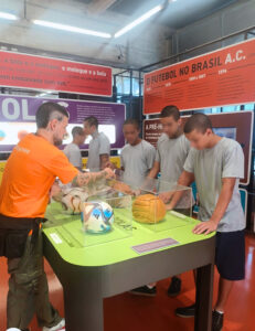 Durante o passeio, os adolescentes exploraram duas exposições: a mostra permanente “Novo Museu do Futebol” e a exposição temporária “Vozes da Várzea”. Reformulada recentemente, a principal exposição oferece salas interativas como a “Dança do Futebol”, onde os visitantes podem relembrar lances históricos, e “Raízes do Brasil”, que traça a relação entre o futebol e a formação cultural do país.
