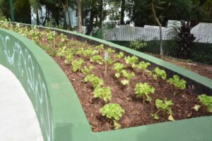 Estrutura do Quintal Verde – O Quintal Verde é composto por: pátio de compostagem, onde os resíduos orgânicos de feiras livres, folhas secas de parques e restos de hortifrútis serão reaproveitados para compostagem; vermicompostagem, outro processo de compostagem, mas que utiliza de minhocas para transformar o material orgânico em adubo; e biofertilizante; que é um adubo orgânico líquido utilizado para fornecer mais nutrientes para plantas e hortas.
