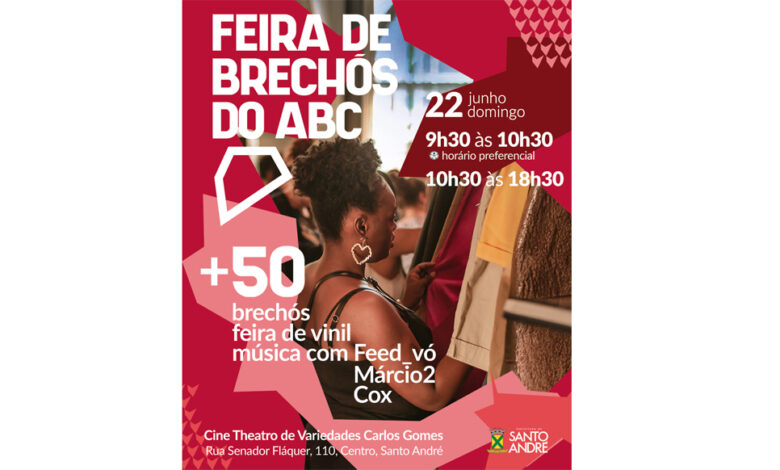 A Feira de Brechós do ABC promove no próximo domingo, 22 de junho, uma edição especial dedicada à temporada de outono/inverno. O evento acontece das 9h30 às 18h30, no Cine Theatro Carlos Gomes, localizado na Rua Senador Fláquer, 110, Centro de Santo André. Com entrada gratuita e ambiente pet friendly, a feira reúne moda, música, economia criativa e ações de incentivo ao consumo consciente.