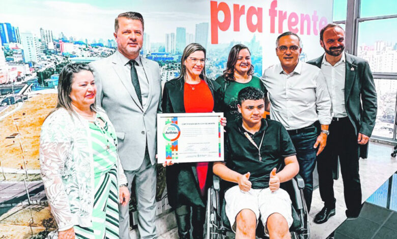 A Prefeitura de São Bernardo, sob o comando do prefeito Marcelo Lima – Podemos, deu um importante passo rumo à inclusão social com a entrega do primeiro Selo Empresa Amiga do Autista. A Datamace Informática, instalada há 38 anos na cidade, foi a primeira contemplada com o reconhecimento, concedido nesta quarta-feira (18), por adotar políticas de contratação de pessoas com TEA – Transtorno do Espectro Autista.