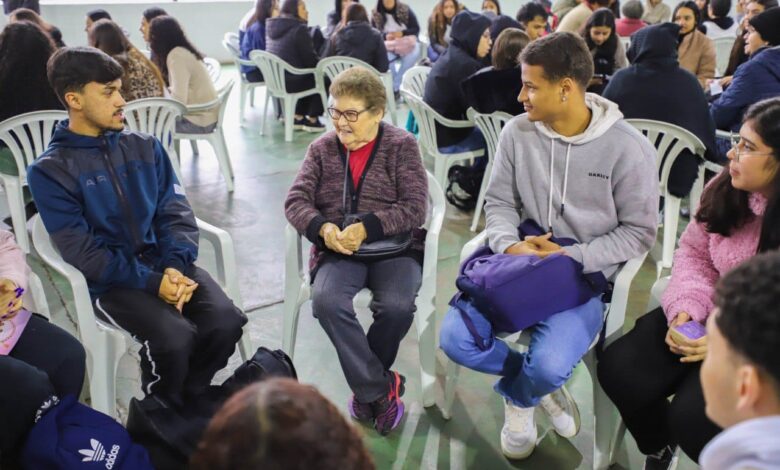 Nesta gelada quinta-feira (3), idosos e idosas do Centro de Convivência da Pessoa Idosa (CCMI), ligado à Secretaria de Assistência Social e Cidadania (SASC), estiveram na Sodiprom para um encontro com os adolescentes que estão ali sendo preparados para o primeiro emprego. Como parte dessa preparação, os jovens constantemente trazem ao centro dos debates temas como inclusão e respeito às diversidades e o tema deste encontro foi o combate ao etarismo.