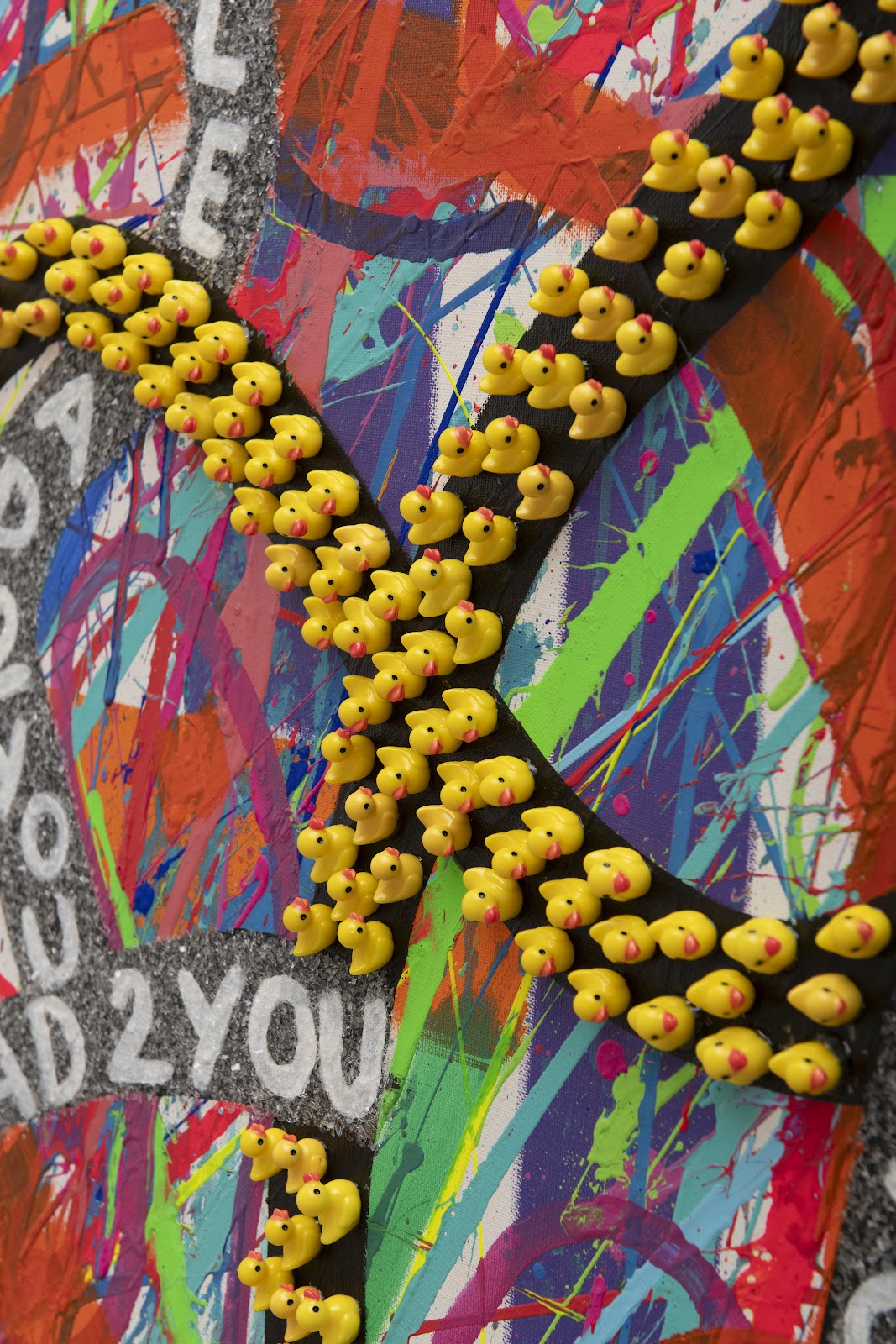 Dividida em duas séries — Magic Roads e Innerbloom —, a exposição apresenta trabalhos que exploram temas ligados à intuição e à espiritualidade, com uso intenso de cores, relevos e variações de textura. Em meio a cores e texturas, um elemento se destaca: o patinho de borracha, ponto de ironia e respiro lúdico na obra da artista. Inserido de forma deslocada, onde tudo é possível e nada é urgente, ele atua como gesto de humor inesperado e lembra a importância de preservar o lado mais genuíno — a presença viva da criança interior. Para Fernanda, não é mero detalhe, mas um lembrete de que a arte pode ser irreverente, leve e improvável.