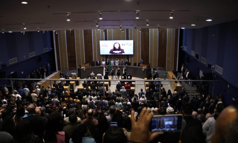 Na noite desta segunda-feira (25), a vereadora Luana Eloá realizou na Câmara Municipal a Sessão Solene de Ação de Graças em homenagem ao aniversário de 472 anos de São Bernardo do Campo.