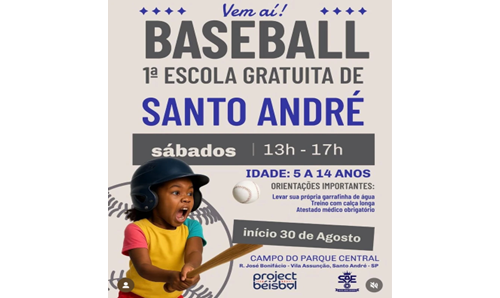 NA CHEGADA do projeto desse esporte na região a Prefeiturade Santo André anunciou o lançamento da primeira escola de beisebol do Grande ABC. Umprojeto inédito que busca ampliar a oferta de modalidades esportivas na cidade e voltada para crianças e adolescentes de 5 a 14 anos.