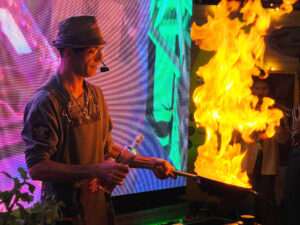 Um dos atrativos preferidos pelo público que passa pelo Boteco são as aulas-show, com chefs renomados e convidados especiais, que preparam, ao vivo, diversas receitas saborosas tendo como base o camarão. Durante o preparo, eles vão interagindo com o público, que acompanha os dotes culinários na cozinha montada na estrutura ou por meio dos telões.