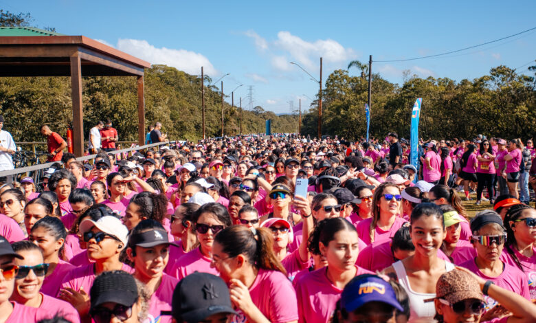 Prova exclusiva para mulheres foi realizada no Parque Caminhos do Mar e teve percursos de 5 km, 10 km e caminhada, com arrecadação de absorventes para doação