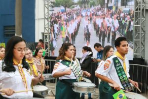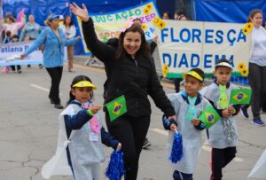 Na sequência, foi a vez da apresentação e desfile de 48 escolas municipais, seis escolas estaduais e uma escola particular, algumas delas trazendo suas fanfarras. As crianças dos ensinos iniciais garantiram a alegria em cada passagem pela avenida.