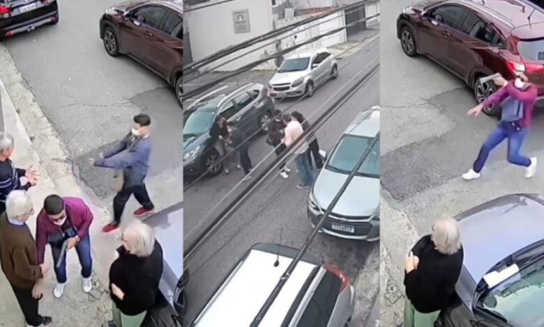 No primeiro ataque, os assaltantes desceram de um Honda HR-V vinho e abordaram três idosos, sendo um homem de 81 anos e um casal de 58 e 56 anos. Juntamente com a violência do ato, os criminosos revistaram as vítimas e levaram R$ 50, um celular e a aliança de um dos amigos do idoso, conforme relatado pelas vítimas.
