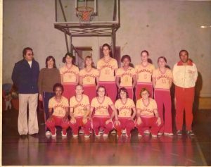 Time do São Caetano Esporte Clube que conquistou o Torneio das Estrelas realizado na cidade peruana de Chiclayo, em janeiro de 1972. Em pé, Waldir Pagan Peres (técnico), Delcy, Jacy, Nilza, Marlene e Rosália. Agachadas, a partir da esquerda, Elzinha, Benta, Odetinha, Maria Angelina e Norminha. O título foi conquistado antecipadamente na partida diante do Sporting Cristal (de Lima, Peru), derrotado pelo placar de 65 x 31. A equipe sul-caetanense totalizou 361 pontos no torneio. Acervo/FPMSCS