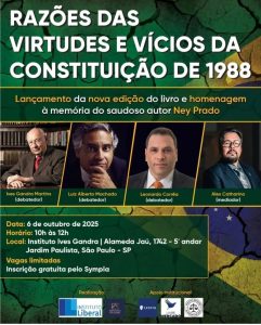 - Evento: Lançamento da nova edição do livro “Razões das Virtudes e Vícios da Constituição de 1988”, de Ney Prado.