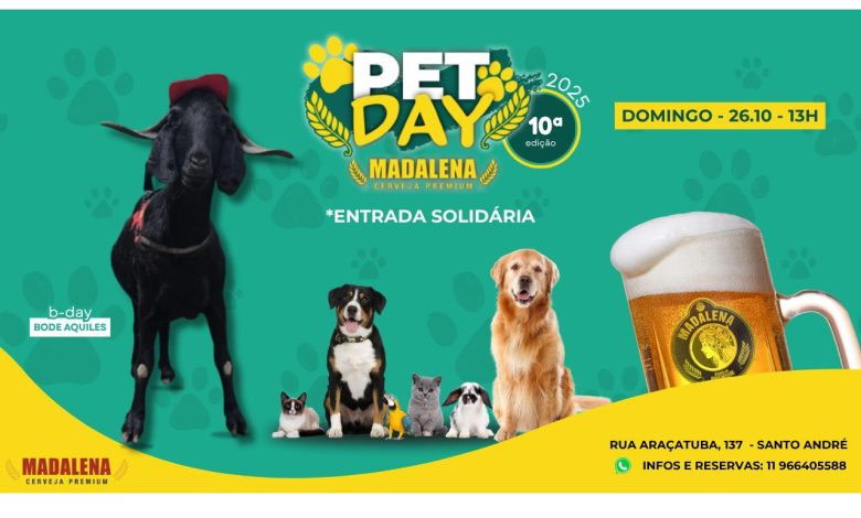 A Cervejaria Madalena prepara mais uma edição de sucesso de um dos eventos mais aguardados pelo público pet friendly do ABC Paulista. No dia 26 de outubro, a partir das 13h, o Pátio Madalena, em Santo André, será palco da 10ª edição do Pet Day Madalena, uma celebração que une diversão, solidariedade e amor pelos animais.
