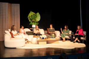 O Teatro Santos Dumont recebeu na noite desta terça-feira (14/10) o encontro “Falando Sério… Quando a 1ª Voz se Levanta, Nenhuma Mulher Fica Sozinha”, promovido pelo Fundo Social de Solidariedade de São Caetano do Sul. O evento reuniu 300 mulheres em um bate-papo necessário sobre o tema violência contra a mulher.