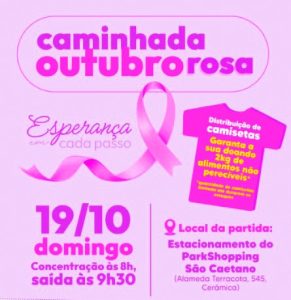A cidade de São Caetano realiza amanhã a Caminhada Outubro Rosa, uma ação voltada à conscientização sobre o câncer de mama e à promoção da saúde feminina. Além disso, o evento também integra atividades de solidariedade, estimulando a doação de alimentos.
