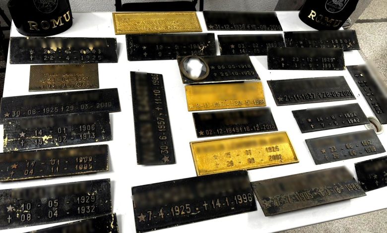Na abordagem, os suspeitos demonstraram nervosismo e apresentaram respostas contraditórias. Ao abrir a caixa, os GCMs constataram que havia diversas placas de bronze utilizadas para identificação de túmulos.