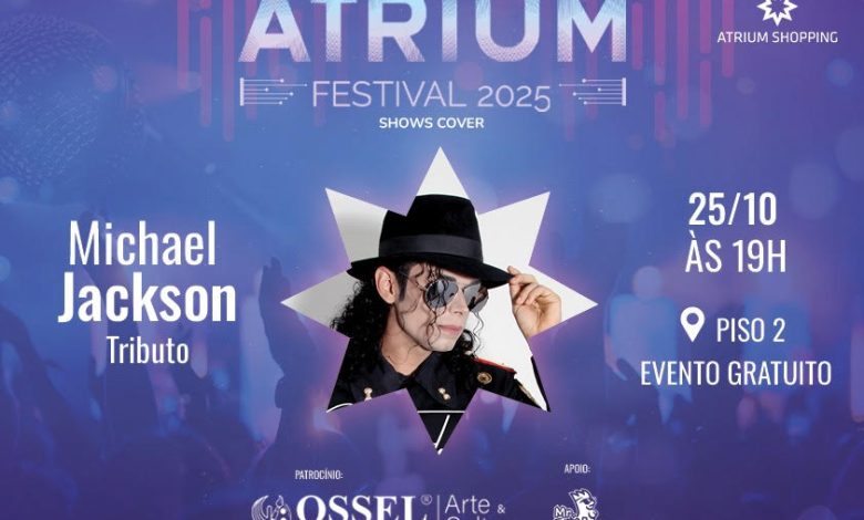 Neste mês, o Atrium Shopping promove um show tributo ao cantor Michael Jackson, com a apresentação do artista cover Christian Joseph. O espetáculo gratuito acontece no dia 25, a partir das 19h, na praça de alimentação, proporcionando uma noite de diversão e celebração da trajetória do eterno Rei do Pop.