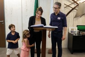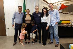 Bárbara Botega com o marido Guilherme Ursine, os filhos, governador, a secretária -adjunta de Cultura e Turismo ,Josiane Souza e o secretário de Comunicação Social, Bernardo Santos