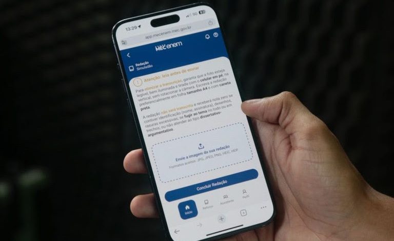 REDAÇÃO — Para testar os conhecimentos na redação, basta acessar a seção Redação do MEC Enem, e logo aparecerá o tema do simulado baseado em provas antigas do exame. Em seguida, o usuário deverá escrever a redação a próprio punho, como na prova do exame, e tirar uma foto do texto.
