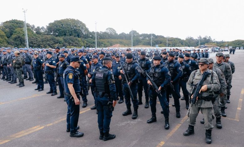 Na prática, a ação reuniu efetivos de diferentes comandos e unidades especializadas, promovendo uma operação integrada em larga escala. A PM atuou com apoio dos comandos regionais e de divisões como o Policiamento Rodoviário, Ambiental, de Choque e de Trânsito, além do helicóptero Águia e do 8º Grupamento de Bombeiros. Também participaram equipes do 6º BAEP, com Cavalaria, Canil e Pelotão de Ações Especiais.