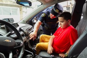 Hoje (05/11), Marcelo pôde também conhecer um pouco mais o trabalho da CGM, dando uma volta na viatura da Guarda, na região onde estuda e mora.