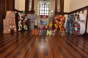 “Temos peças interativas com círculos de papelão sólido e resistente, trabalhados com tramas de crochê e macramê feitos por artesãs, que hora são jogos, hora são bancos para sentar. Temos também máscaras e jogos em cerâmica, a cobra gigante da lenda amazônica, os dinossauros feitos com placas de papelão descartados e reutilizados, a centopéia da felicidade com suas cores vibrantes, os guarda-chuvas coloridos e estilizados e muito mais”, destacou Corazza.