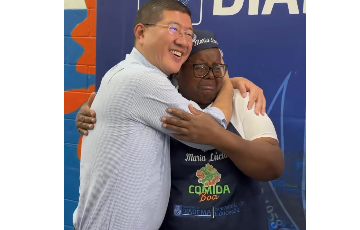 “Saiu a farofa fria, o risotão e o suco ralo. Entrou a refeição de verdade, de qualidade! Aqui em Diadema, nossas crianças comem comida de primeira, feita com todo carinho e respeito”, afirmou Taka.
