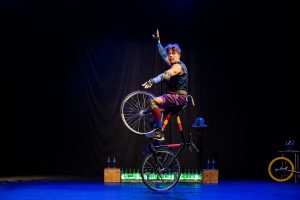 Guilherme Torres estreia número circense do Projeto Vidrado, com garrafas de vidro, monociclo e bicicleta acrobática