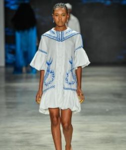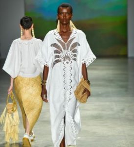 A estilista Catarina Mina apresenta a coleção Carnaúba.palmeira .símbolo do nordeste e fonte tanto da palha usada no artesanato como cera para o mercado de cosméticos com várias conexões como bordados de Caicó do RG .richelieu.bordado livre a mão.renda de bilro e bolsas de palha que a marca trabalha há 5 anos .  Este ano a marca conseguiu o selo de Certificação do sistema B .e além de colaborar com o impacto social.ambiental e olhando para as matérias primas sustentáveis.biodegradaveis. Mistura esse toque artesanal sobre base de tecidos finos de seda ,linho,cambraia de rami e algodão em silhueta alongada próxima do corpo.mas com movimento e transparências